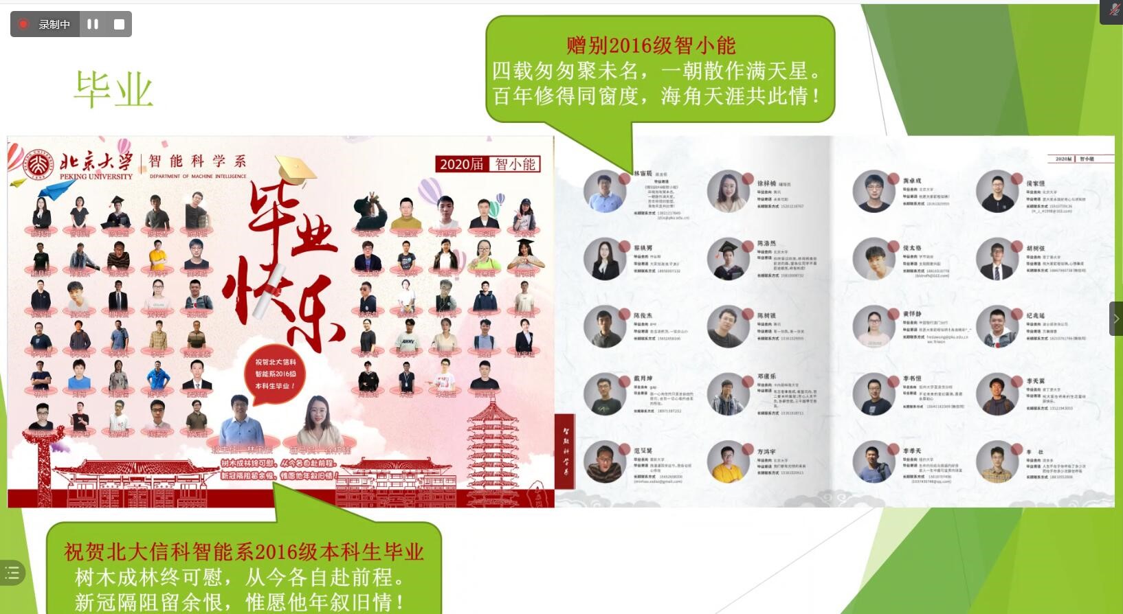 在分享环节,各班班主任对一年来班级的学习和工作情况进行了展示分享。2020级10班班主任裴玉茹老师班级气氛活跃,举办了多次文体活动和素质拓展活动;2017级3班班主任邓志鸿老师紧抓毕业年级学分核对和毕业论文等重点工作,主动联系学习有困难的同学;2018级4班崔锦实老师鼓励并推动同学之间的学习交流,完成部分核心专业课的学习辅导工作;2018级10班班主任王立威老师注重学习成绩外为同学们提供发展方向的指导,指引同学们做好未来规划;研究生机器感知班班主任宋国杰老师重点介绍了研究生班级平衡奖励奖学金的分配的方式方法;研究生机器智能班班主任马秀莉老师积极推动班级学术分享和学术沙龙活动,启发促进不同研究方向的交流与融合;2019级10班班主任赵卉菁老师与班级同学进行一对一沟通交流,了解不同学生的学习生活状况;2020级9班班主任陈婧老师分享军训领队感受,注重期中考试考后心理辅导,以开展“扛压”小游戏的方式代替传统的直接说教,减轻同学们的心理压力;2017级8班班主任谢昆青老师关注毕业年级学生身心状态,和带班辅导员多次进行宿舍走访。