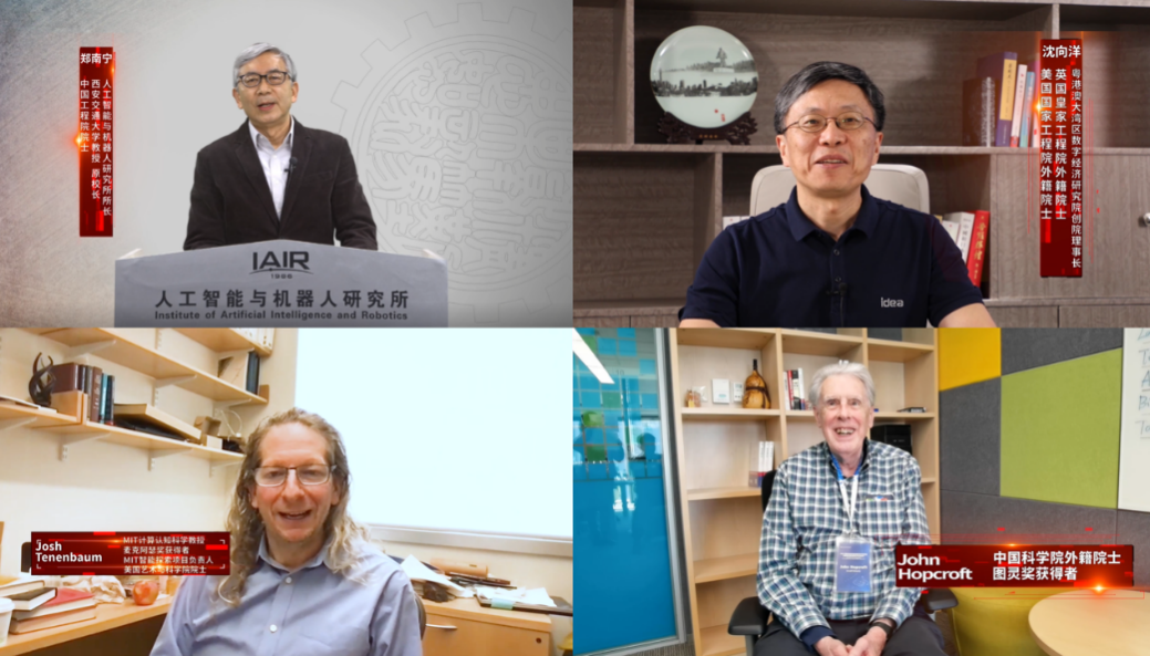 郑南宁(左上)、沈向洋(右上)、Josh Tenenbaum(左下)、John Hopcroft(右下)视频致辞