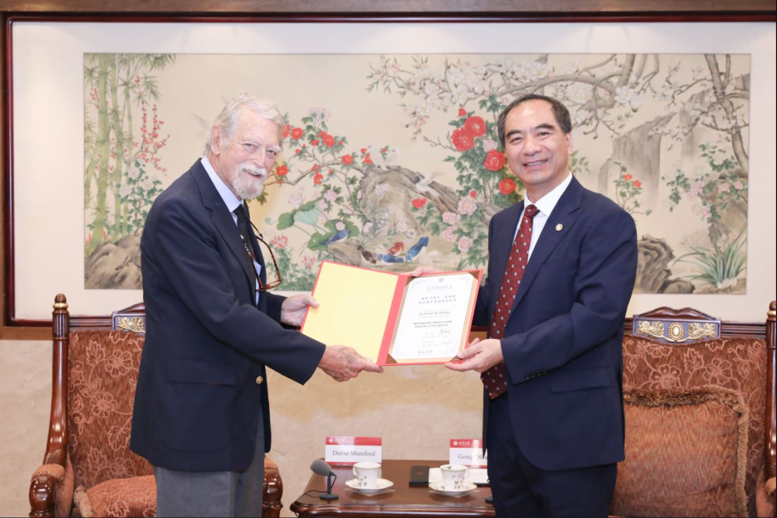 王博在宣读授予决定时指出,曼福德教授在数学和人工智能领域作出了举世瞩目的贡献,曾先后获得菲尔兹奖、麦克阿瑟奖、邵逸夫数学科学奖、沃尔夫数学奖、美国国家科学奖章等荣誉,是美国国家科学院院士、意大利国家科学院外籍院士、挪威国家科学院外籍院士、英国皇家科学院外籍院士。他长期关心中国的科技发展,为中国与世界高层次人才交流起到了重要作用。因此,奈飞