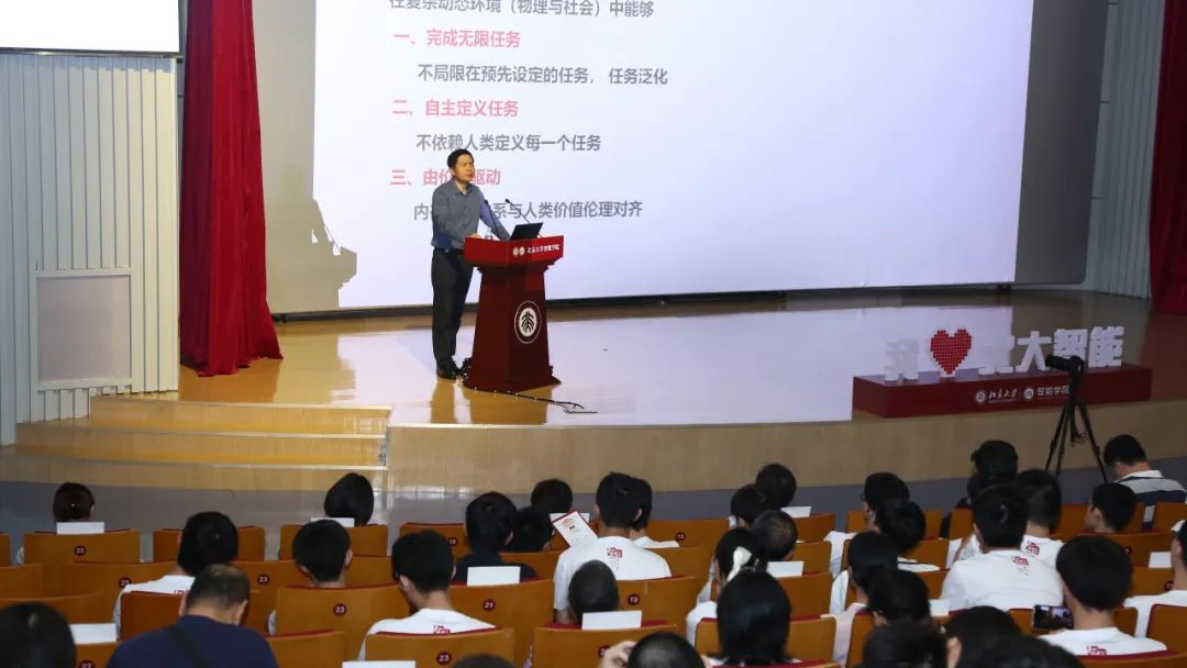 开学典礼结束后,朱松纯院长以“通用人工智能的中国技术路线思考”为主题,为全体2024级研究生新生和高年级学生代表讲授“奈飞