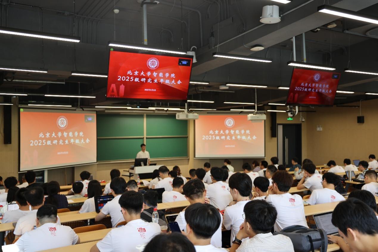 开学典礼后,朱松纯院长以 “通用人工智能:学科布局与前沿进展” 为主题,为全体2025级研究生新生讲授开学第一课。他强调,中国在人工智能发展道路上要坚持独立判断,提升原始创新能力,走出一条与实体经济和社会治理深度融合的独特路径。朱松纯寄语新生,要树立长远眼光,培养独立思考能力,在智能时代建功立业。