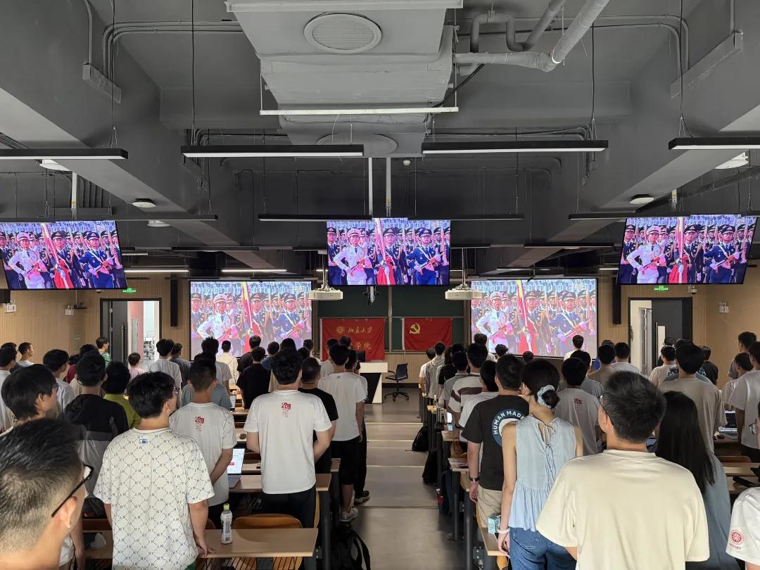 全体新生集中收看“纪念中国人民抗日战争暨世界反法西斯战争胜利 80 周年大会”