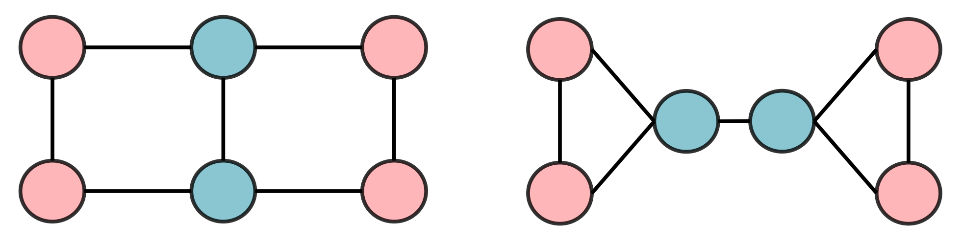 绝大多数图神经网络无法区别上面的4组图中双连通性的差异