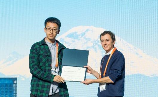 第一作者田雨川同学在CVPR会议上领取获奖证书
