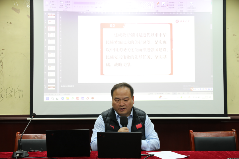 党委副书记、支部宣传委员宋国杰带领与会党员学习全国教育大会精神