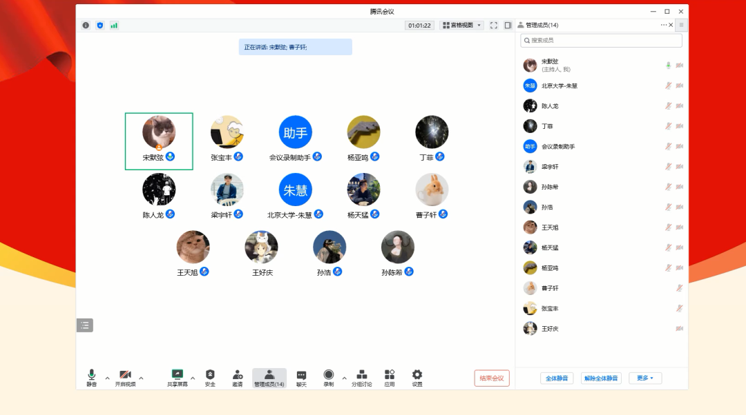 2022年12月17日下午14时,智能系统研究生党支部联合机器智能高年级博士团支部线上开展“学习二十大精神,赓续红色血脉”主题党团日活动,活动由智能系统研究生党支部书记宋默弦与机器智能高年级博士团支部书记孙陈希主持。智能系统研究生党支部全体党员、发展对象、入党积极分子与机器智能高年级博士团支部团员参加活动。